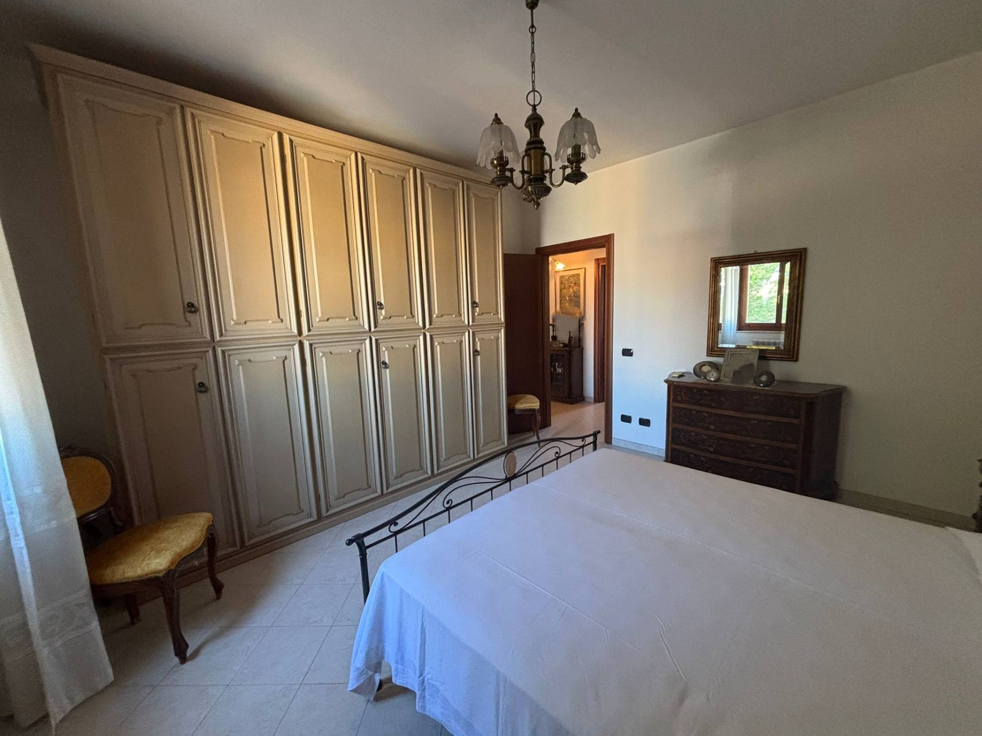 In centro e in zona servita da parcheggio, luminoso Appartamento posto al secondo piano in condominio con ascensore. L'interno si divide da ingresso in ampio soggiorno, cucina con camino e cucinino, camera matrimoniale, due camerette, bagno patronale, bagno di servizio e ripostiglio. Due ampi balconi. Box di proprietà. Libero da subito.