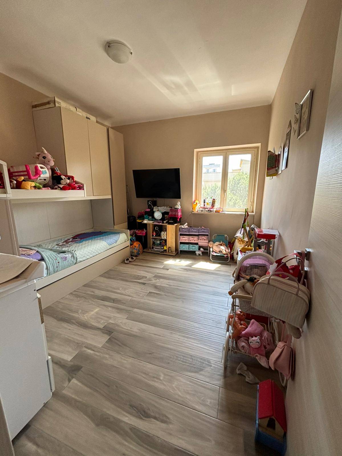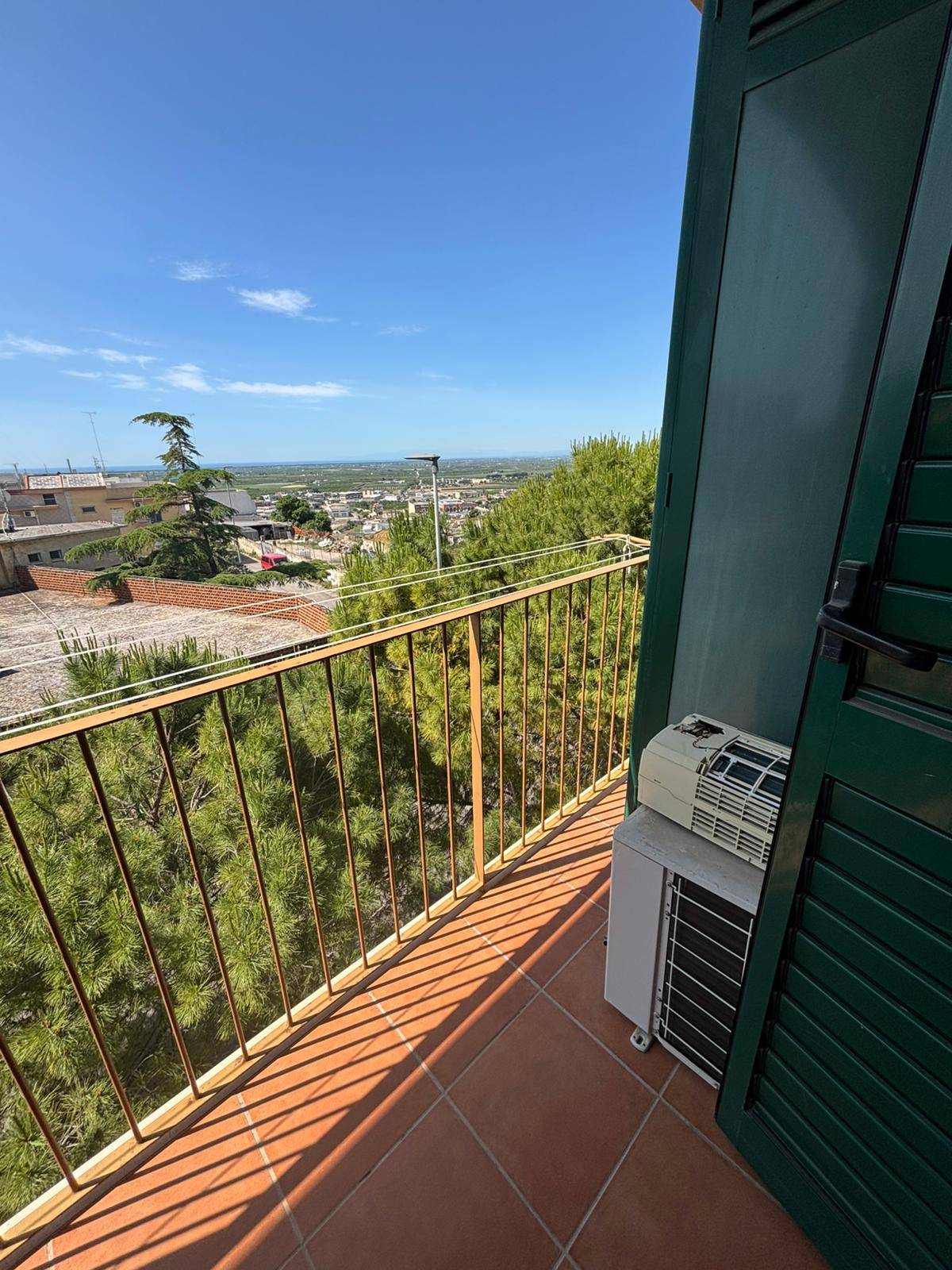 In zona tranquilla e in condominio privo di ascensore, rifinito e luminoso Appartamento al secondo piano. Interno composto da ingresso, soggiorno, cucina, camera matrimoniale, cameretta,bagno con doccia e angolo lavanderia. Riscaldamento con stufa a pellet e predisposizione di climatizzatori. Due balconi, di cui uno con ripostiglio esterno. Suggestiva vista panoramica. Cantinola di proprietà.