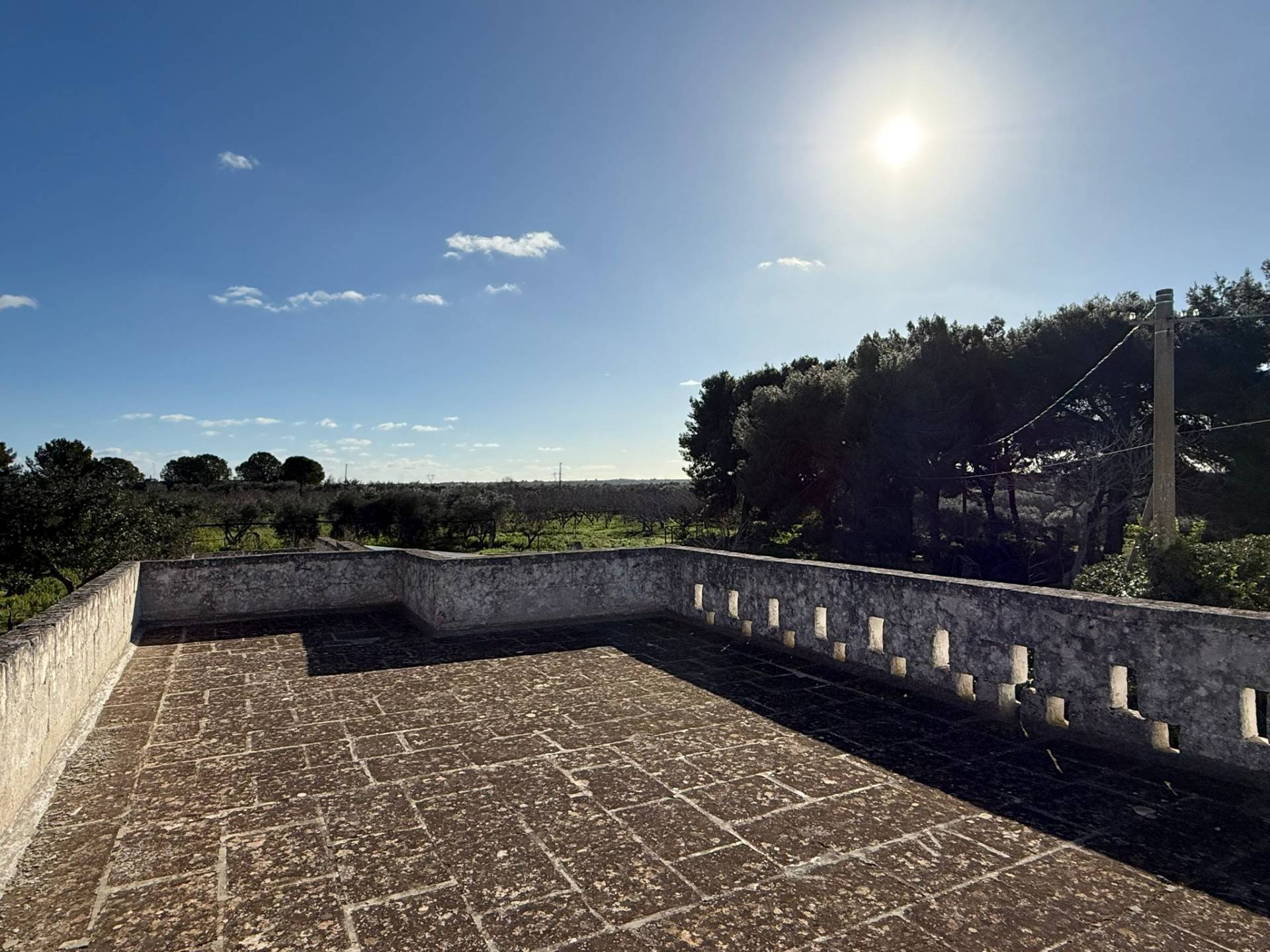 Inoltre il piano terra è caratterizzato da magazzini e depositi. Terreni circostanti di 20 ettari di varia destinazione come ad esempio mandorleto, pascolo, seminativo, uliveto. Acquedotto pugliese, pozzo artesiano, impianto d'allarme.